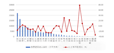 圖 8 2025 年上半年各地區(qū)建筑業(yè)企業(yè)房屋施工面積及其增長(zhǎng)情況